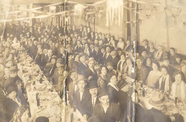 Photograph from “The 25th anniversary banquet of Congregation Oher Chodosh Anshe Romanian,” likely held in the basement of the congregation’s synagogue on Roberts Street in the Hill District. Original image broken into three parts.