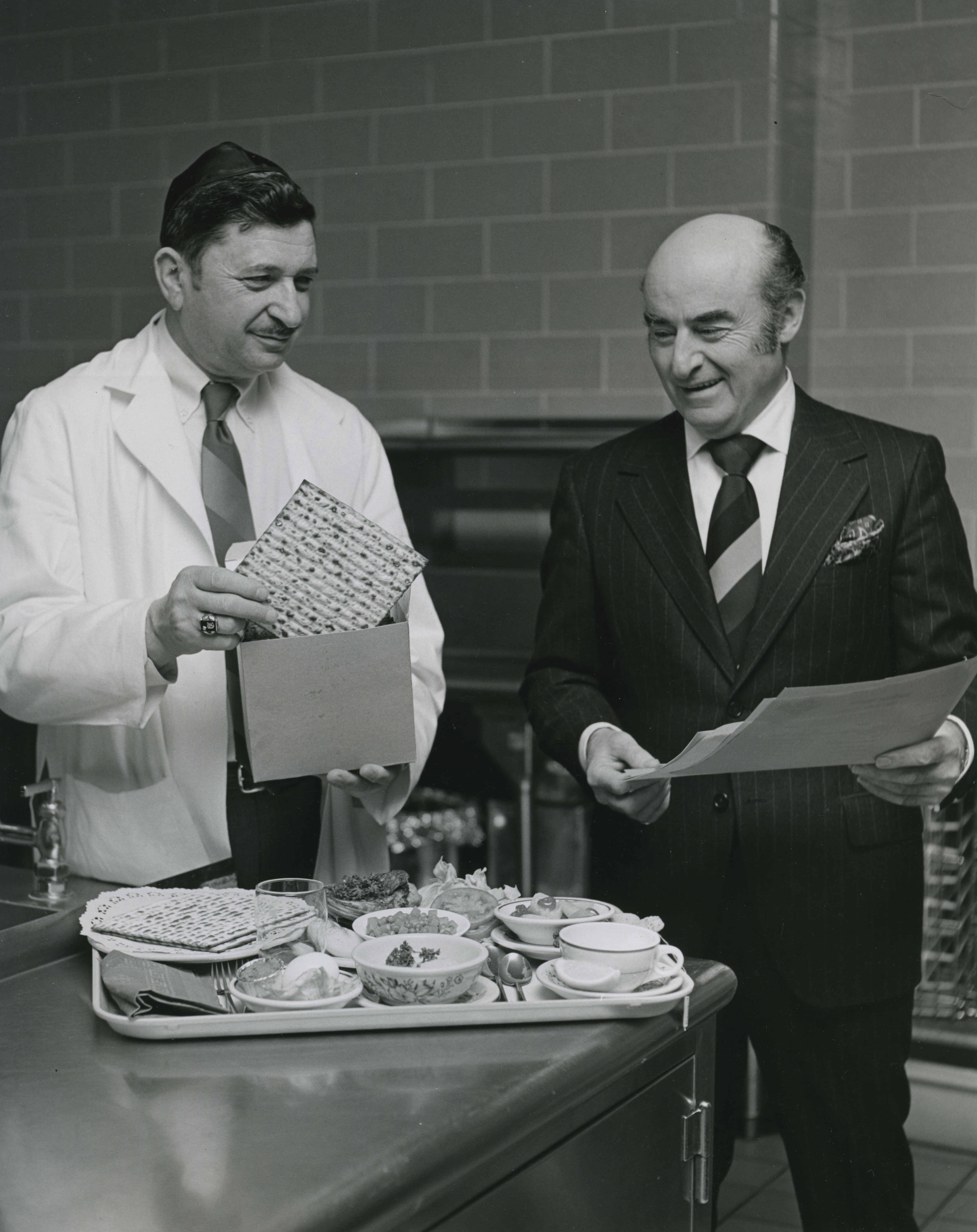 Ted Dashevsky, the supervisor of the Montefiore Hospital kosher kitchen, prepares a Passover tray for a patient. Date 1970 Identifier MSP287_B001_F010_I01 Collection Montefiore Hospital Photographs Source Rauh Jewish Archives at the Heinz History Center
