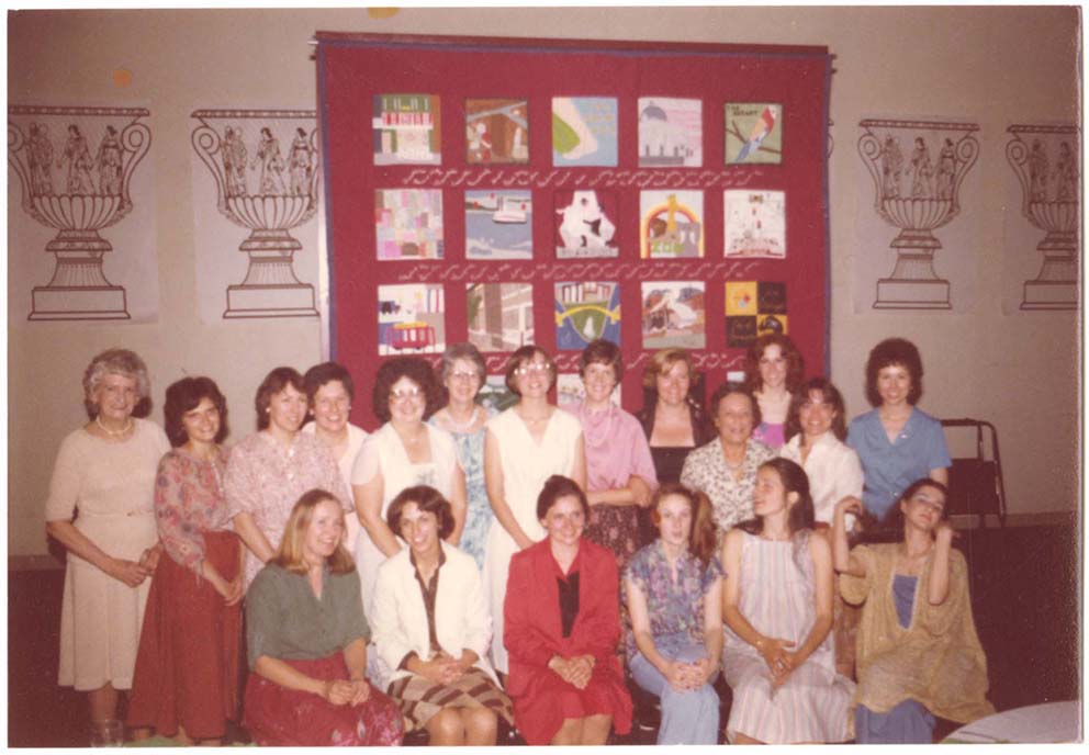 Color photograph of (first row, second from left) Louise Silk with fellow Quilter’s Triangle Members.