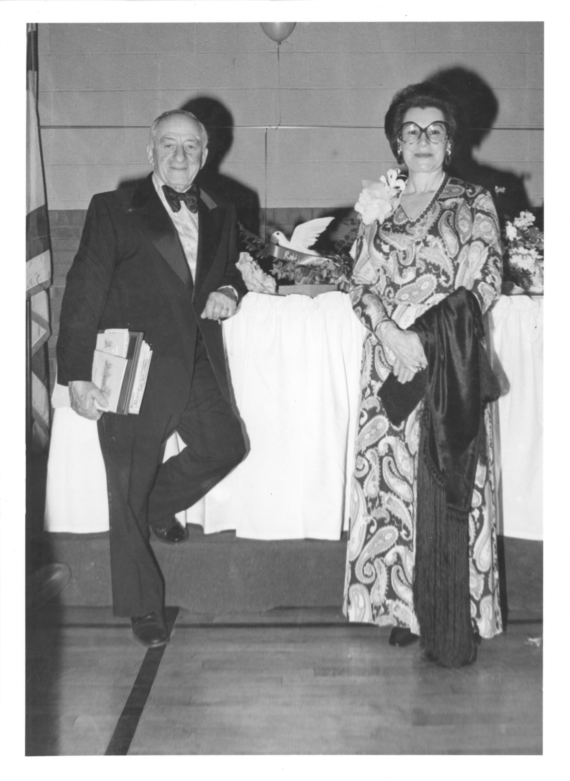 Black and white photograph of (from left to right) Rabbi David Matzner and his wife, Lucina Matzner.