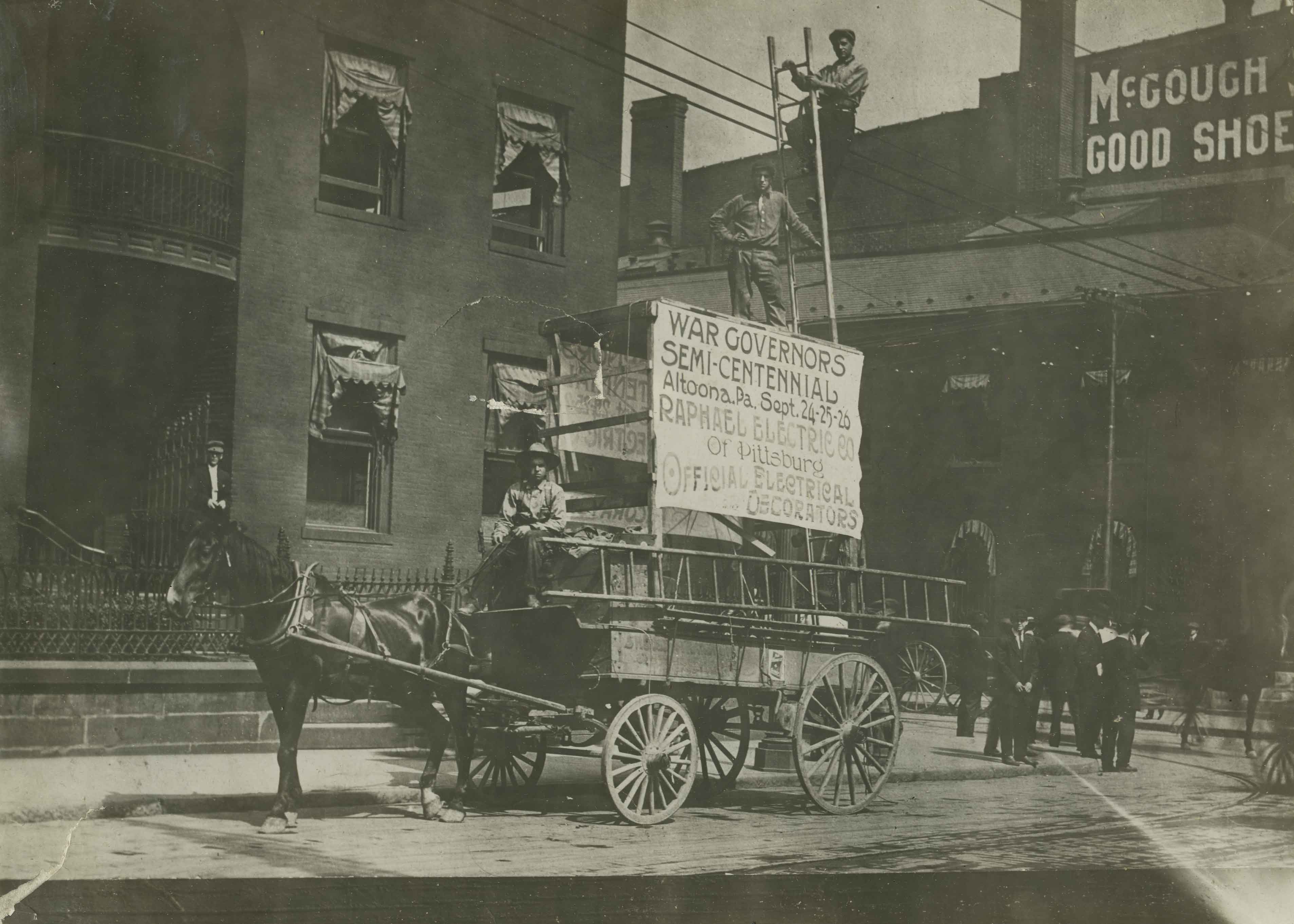 Employees of the Raphael Electric Company marketing their work during the War Governors Semi-Centennial Conference in Altoona, Pa.