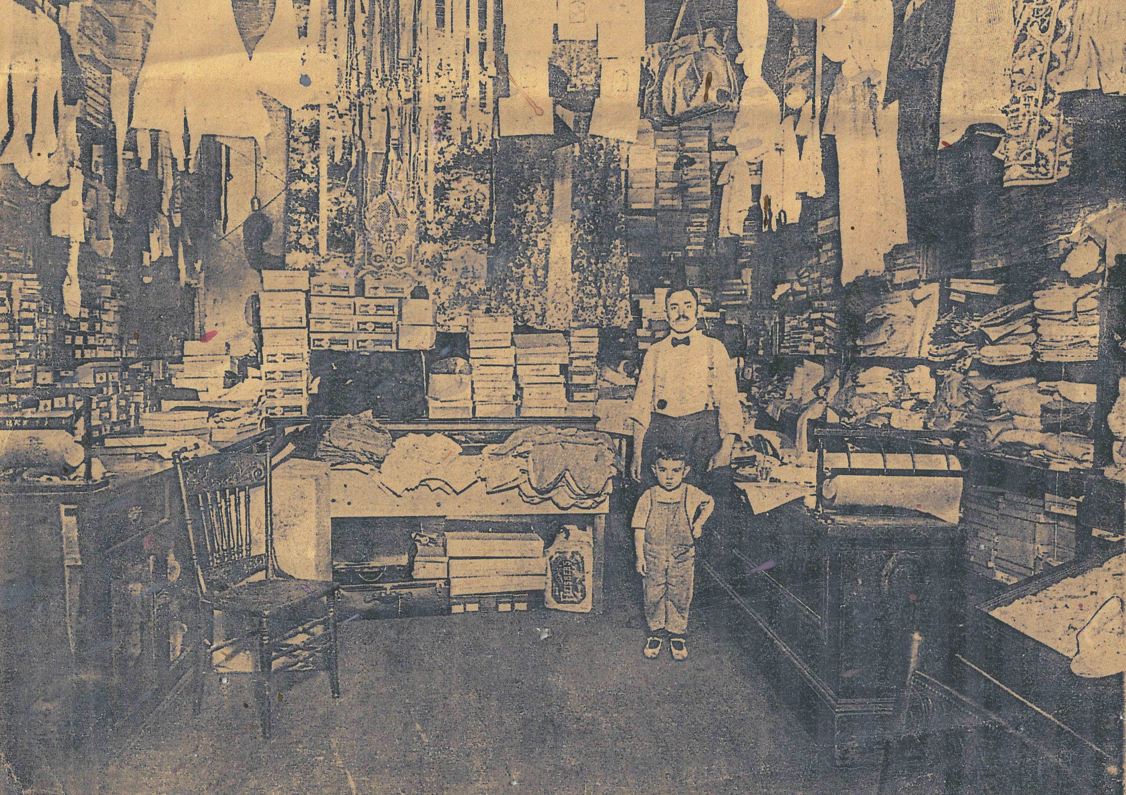 The interior of Sam Reznik and Sons dry goods store at 68 Logan Street in the Hill District. Date undated Identifier Blumenfeld_I07 Collection Courtesy of Rochelle Blumenfeld Family The Reznik Family : View Family Member
