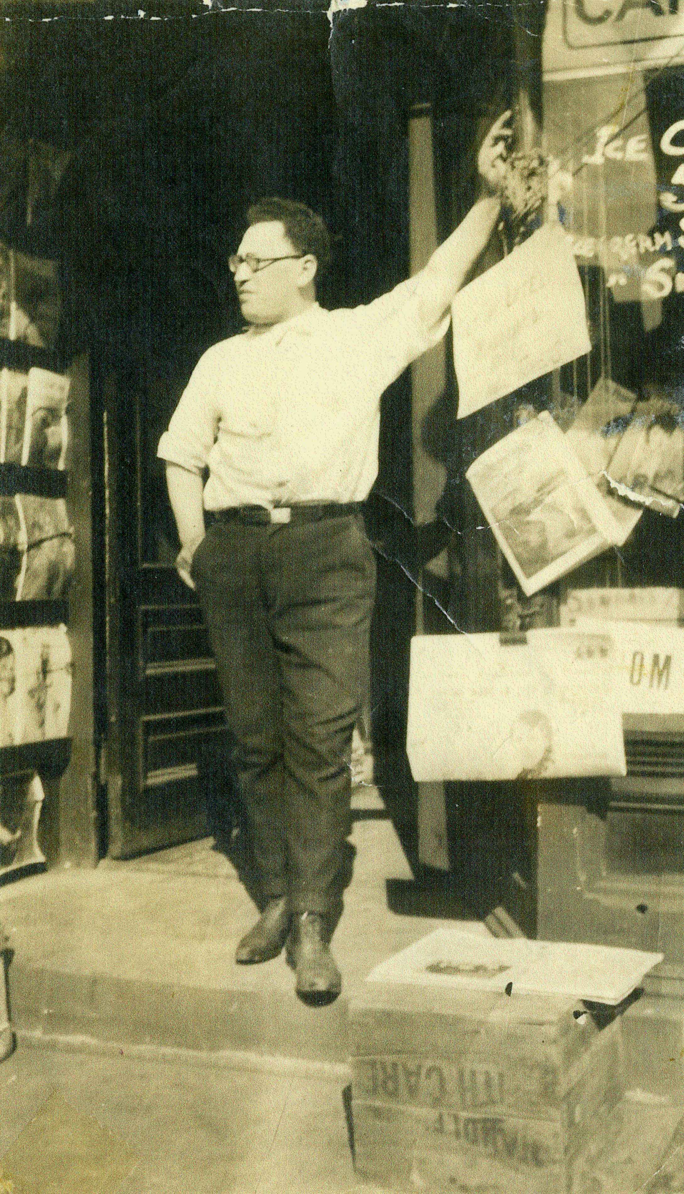 Samuel Reingold in front of his ice cream store in Homewood. Date undated Identifier MSQ537_I07 Collection Reingold Family Photographs Source Rauh Jewish Archives at the Heinz History Center Family The Reingold Family : View Family Member