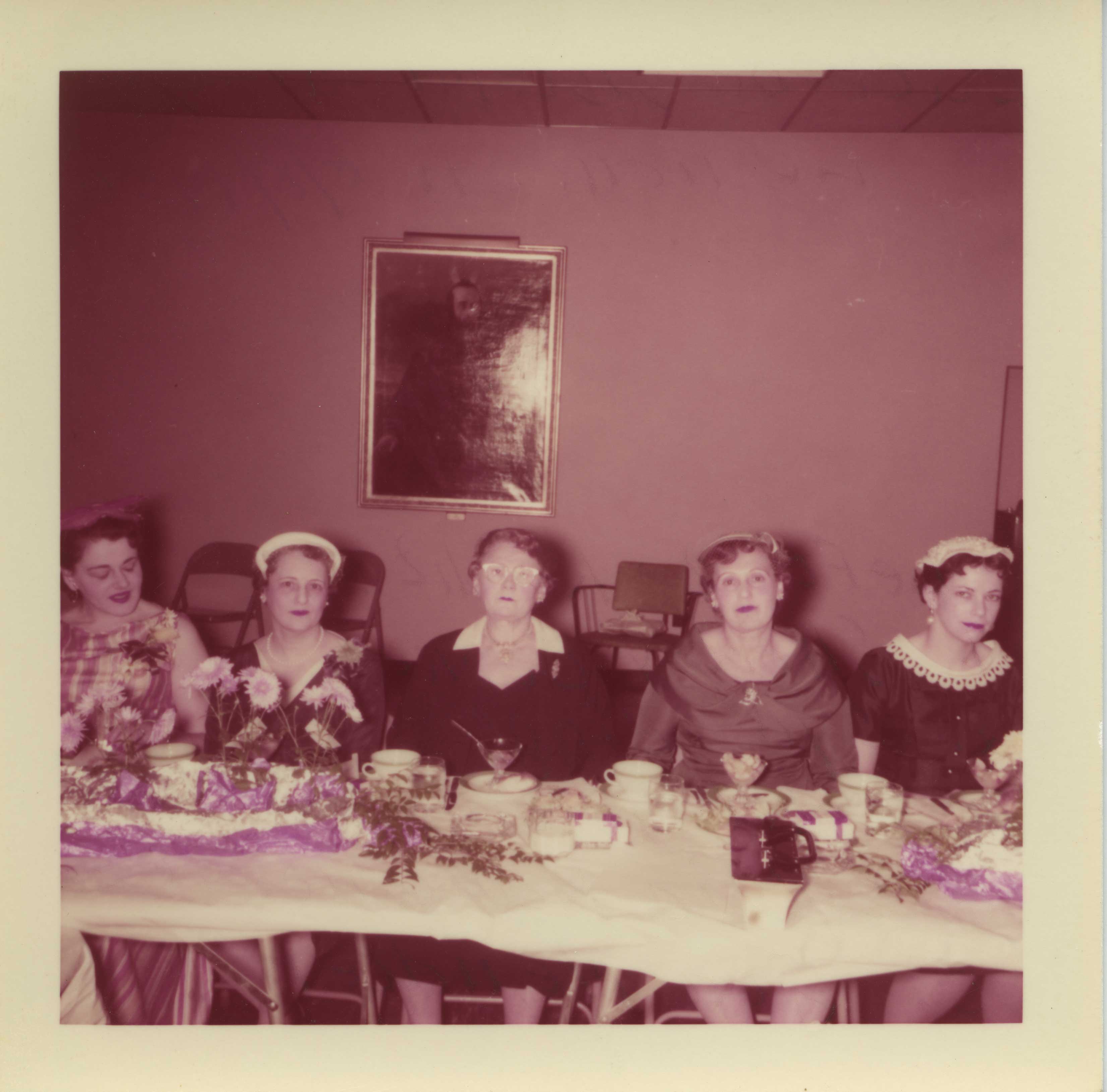 From left to right, Shirley Burke, Syd Bigg, Ethel Goldenson, Sylvia Kahanowitz and Joan Mendler at a Sisterhood luncheon at Beth Israel Congregation in Latrobe.