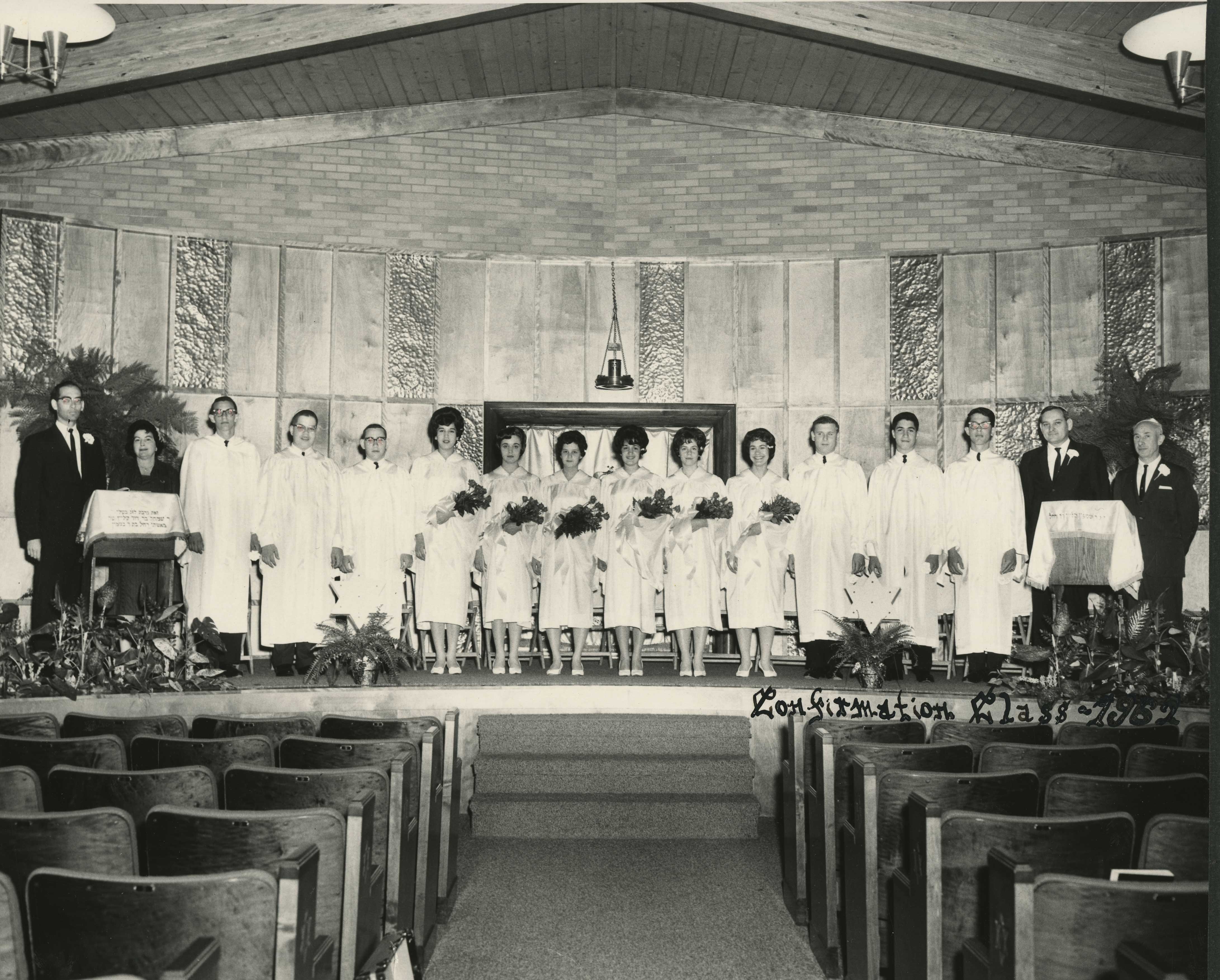 (From left to right) Rabbi Israel Poleyeff, Ethel Slovonsky, Norman Levine, Rick Marlin, Michael Marlin, Reva Berkman, Judy Rubinfeld, Deena Mirow, Charlotte Levine, Marey Goldman, Sharon Grossman, Stan Cohen, Jeff Mossoff, Larry Rosin, Ted Marlin and David Koss.