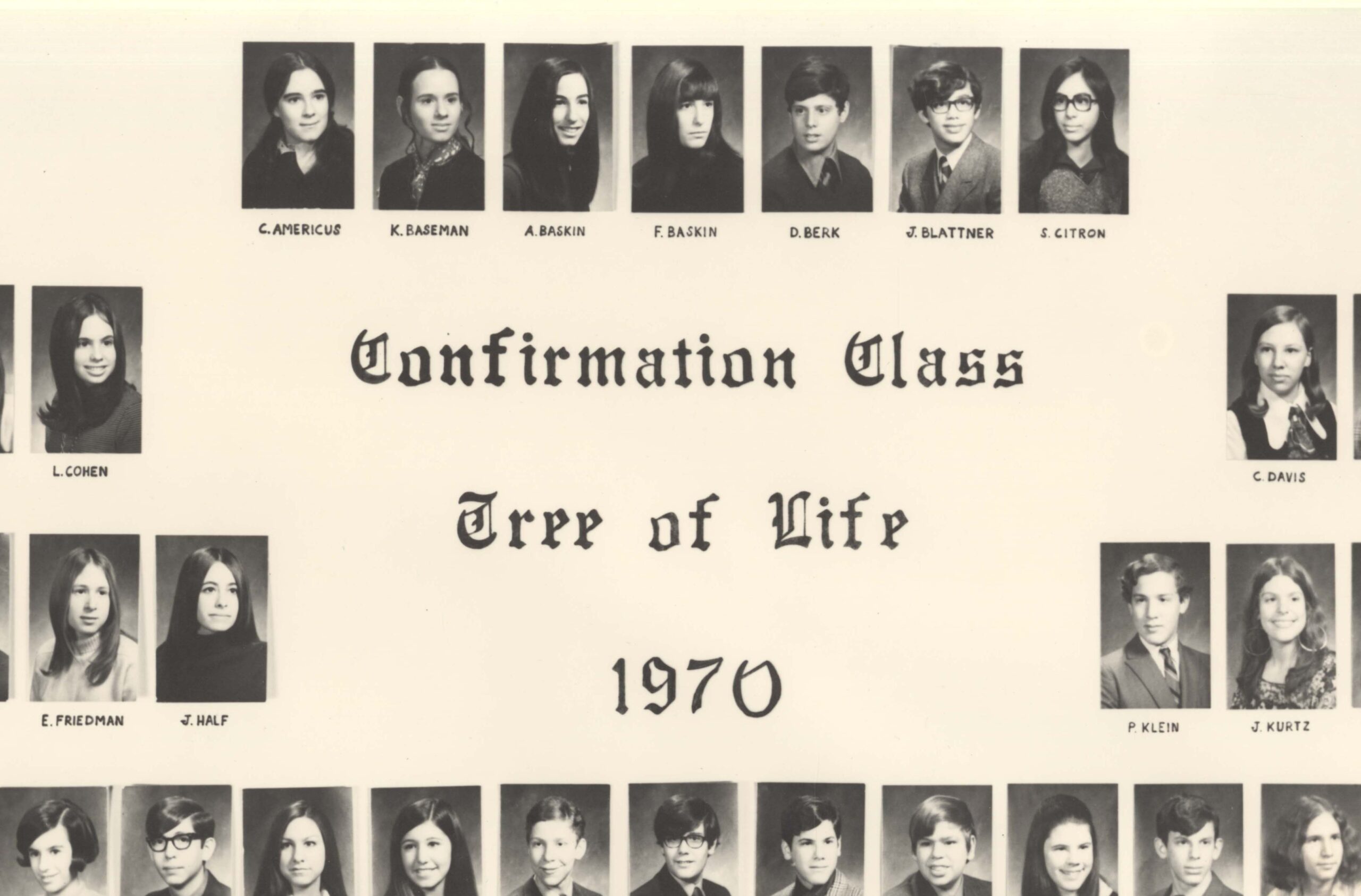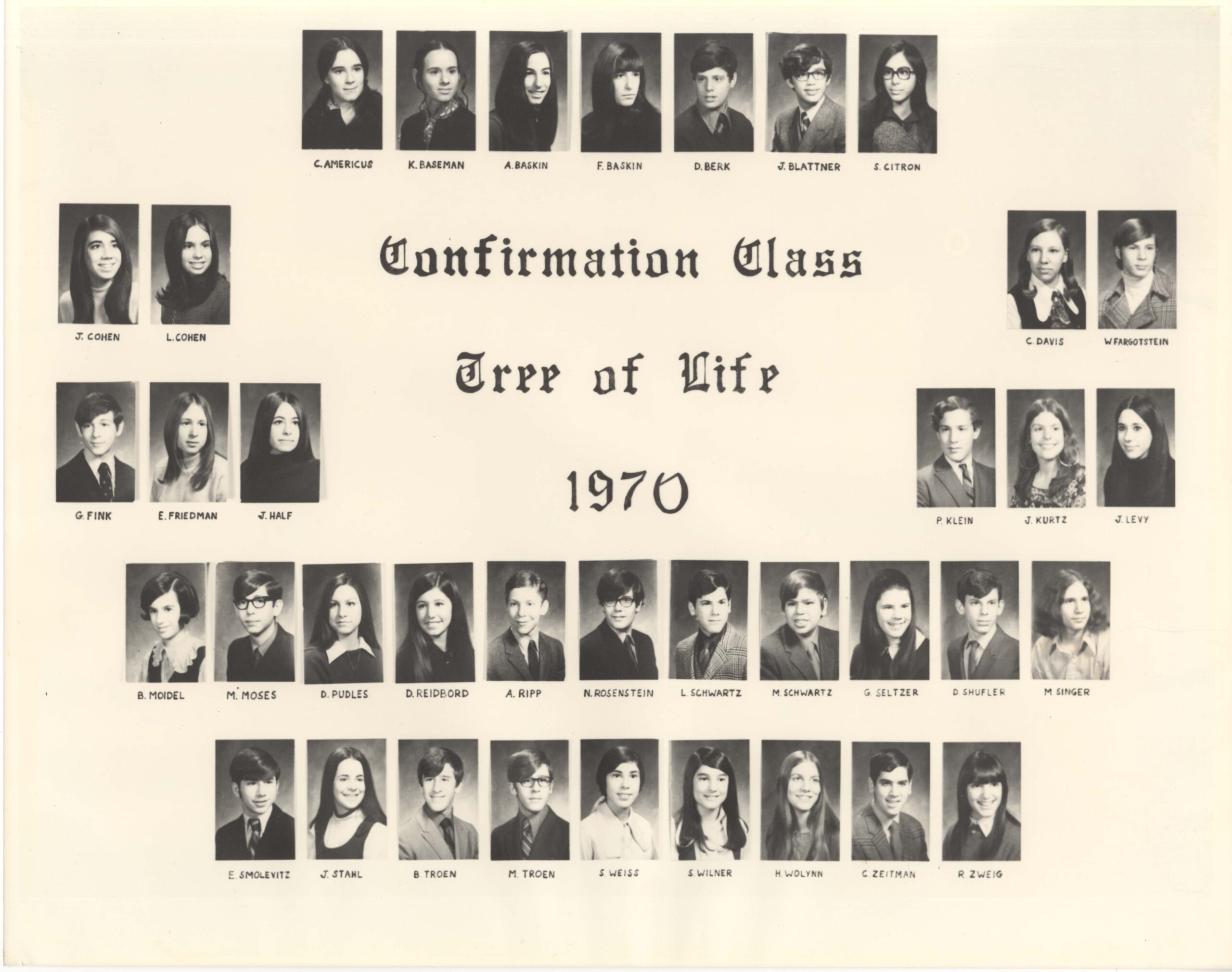 Photograph of the 1970 confirmation class of Tree of Life Congregation of Pittsburgh. Pictured: C. Americus, K. Baseman, A. Baskin, F. Baskin, D. Berk, J. Blattner, S. Citron, J. Cohen, L. Cohen, C. Davis, W. Fargotstein, G. Fink, E. Friedman, J. Half, P. Klein, J. Kurtz, J. Levy, B. Moidel, M. Moses, D. Pudles, D. Reidbord, A. Ripp, N. Rosenstein, L. Schwartz, M. Schwartz, G. Seltzer, D. Shufler, M. Singer, E. Smolevitz, J. Stahl, B. Troen, S. Weiss, S. Wilner, H. Wolynn, C. Zetiman, and R. Zweig.